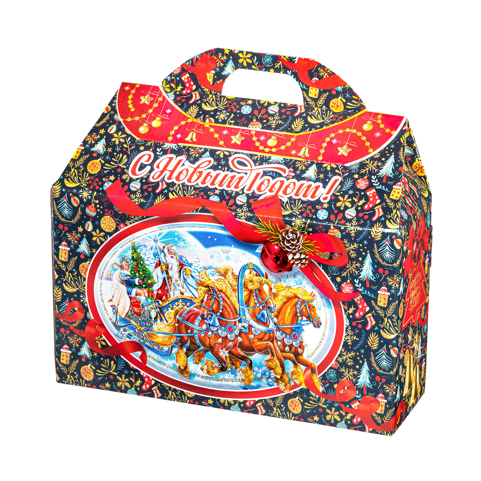 Представляем вам Новогодний Сладкий Подарок в форме стильного чемоданчика! Этот уникальный набор подходит как для подарков близким, так и для корпоративов, создавая атмосферу волшебства и тепла в эти зимние дни!Яркая упаковка сразу привлечет внимание своим оформлением: темно синий фон здесь идеально сочетается с контрастными элементами. Наличие удобной прорезной ручки делает подарок очень удобным для транспортировки. Внутри набора находятся разнообразные вкусные сладости, которые станут украшением любого праздничного стола. Помимо сладкого наполнения, набор может порадовать небольшим памятным сувениром в виде символа наступающего года.